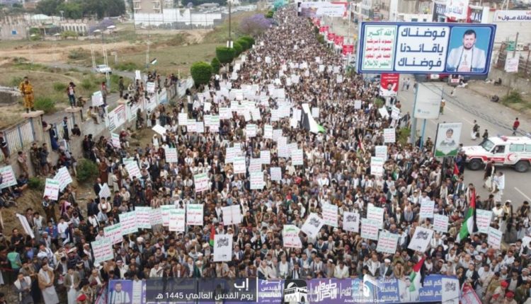 خرجت عصر ، الجمعة، بمحافظة إب مسيرة شعبية حاشدة، بمناسبة يوم القدس العالمي 1445 هـ.