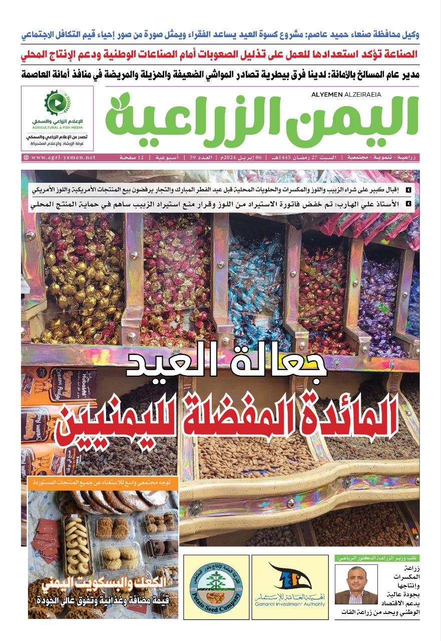 لتصفع العدد الـ “59” من “اليمن الزراعية”، أو تنزيله على الرابط اليمن الزراعية العدد 59