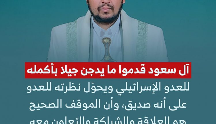 لافتا الى ان آل سعود قدموا ما يدجن جيلا بأكمله للعدو الإسرائيلي ويحوّل نظرته للعدو على أنه صديق، وأن الموقف الصحيح هو العلاقة والشراكة والتعاون معه .. وان أحد زعماء السعودية بلغ إلى درجة أن قال عن العدو الإسرائيلي أنه الحليف المستقبلي.