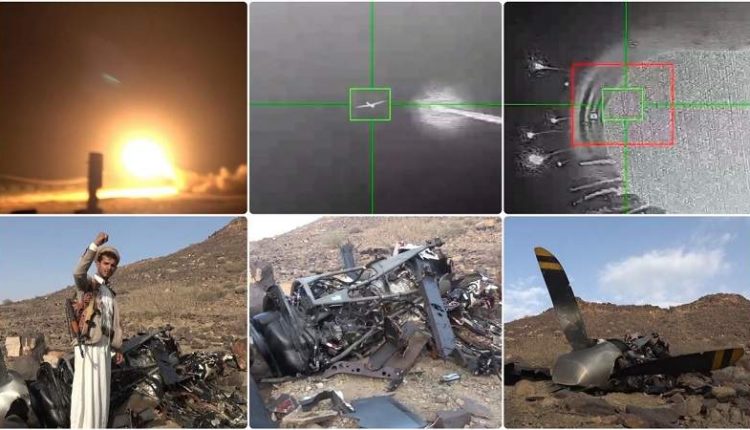 الإعلام الحربي يوزع مشاهد إسقاط الطائرة الأمريكية “MQ-9 Reaper” في أجواء صعدة
