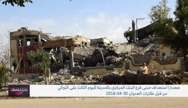 30أبريل 2018… طيران العدوان يقصف البنك المركزي بصعدة لليوم الثالث