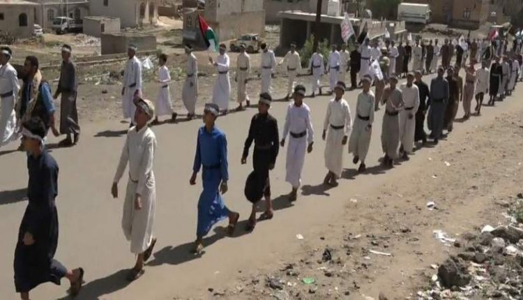نظم مركز الفتح الموعود الصيفي النموذجي في مديرية همدان ، محافظة صنعاء، اليوم، مسيراً طلابياً بالذكرى السنوية للصرخة وتضامنا مع غزة.