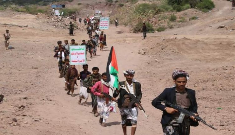 وانطلق المشاركون في المسير والعرض حاملين العلَمين اليمني والفلسطيني، وشعار البراءة، مرددين الهتافات الحماسية.