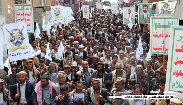 حيث أقيمت مسيرات بمديريات مركز مدينة المحويت وشبام كوكبان “بالجامع الكبير وسوق بادية”، ومركز مديرية شبام والطويلة والرجم بساحة “الرسول الأعظم”، وسهل باقل والخبت في “المرواح ومنطقة عبس والعمارية وجبع ونمرة الظاهر” وبني سعد بمركز المديرية، والخميس وسوق الربوع وجمعة سارع وملحان في “بني الحجاج والروضة”، والشجاف وبدح المحدود وجبل المحويت بساحات “العرقوب وسوق الأحد والاحجول” وحفاش بمركز المديرية، وكذا في الصفقين والملاحنة وراود.