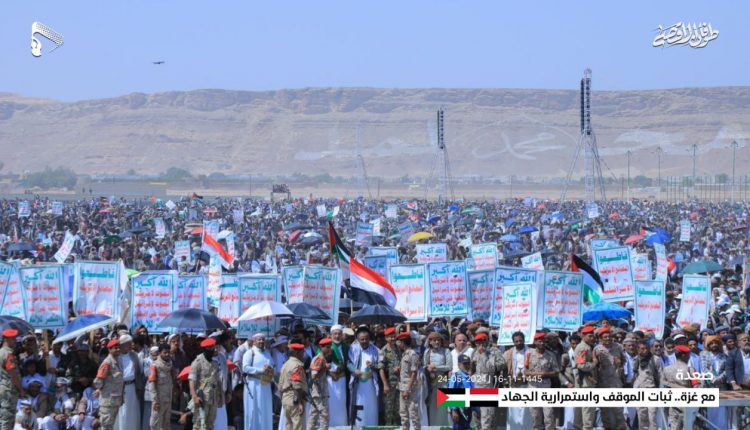 مسيرات كبرى في 20 ساحة بمحافظة صعدة تحت شعار (مع غزة.. ثبات الموقف واستمرارية الجهاد)