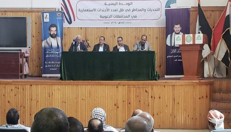 نظمت السلطات المحلية والمركز الإعلامي للمحافظات الجنوبية اليوم الاثنين بصنعاء، ندوة سياسية بعنوان “الوحدة اليمنية.. التحديات والمخاطر في ظل تعدد الأجندات الاستعمارية في المحافظات الجنوبية”.