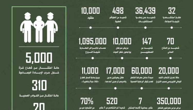 إحصائية 240 يوم من الإجرام الإسرائيلي المتوحش على قطاع غزة إحصائية 240 يوم من الإجرام الإسرائيلي المتوحش على قطاع غزة إحصائية 240 يوم من الإجرام الإسرائيلي المتوحش على قطاع غزة Last updated يونيو 2, 2024 Share يمني برس- انفوجرافيك إحصائية 240 يوم من الإجرام الإسرائيلي المتوحش على قطاع غزة Share