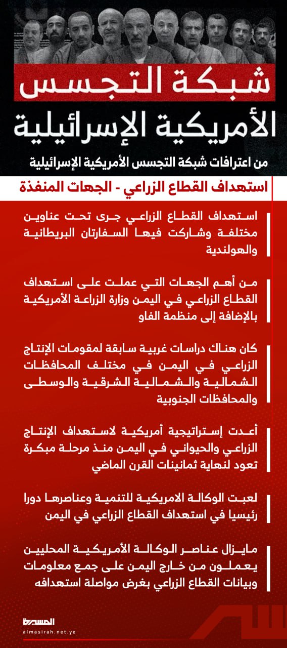 اعترافات شبكة التجسس الأمريكية الإسرائيلية باستهداف القطاع الزراعي اليمني عبر هذه الجهات المنفذة Last updated يونيو 13, 2024 Share يمني برس| اعترافات شبكة التجسس الأمريكية الإسرائيلية باستهداف القطاع الزراعي اليمني عبر هذه الجهات المنفذة Share