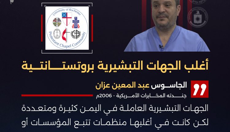 في اعترافات للجاسوس/ عبد المعين عزان، كشف من خلالها عن منظمات ومؤسسات في اليمن منها تعليمية استخدمها الأمريكان تحت ستار مدرسين أو أكاديميين ومهندسين وأطباء لممارسة التنصير.. وقال غزان في اعترافاته: