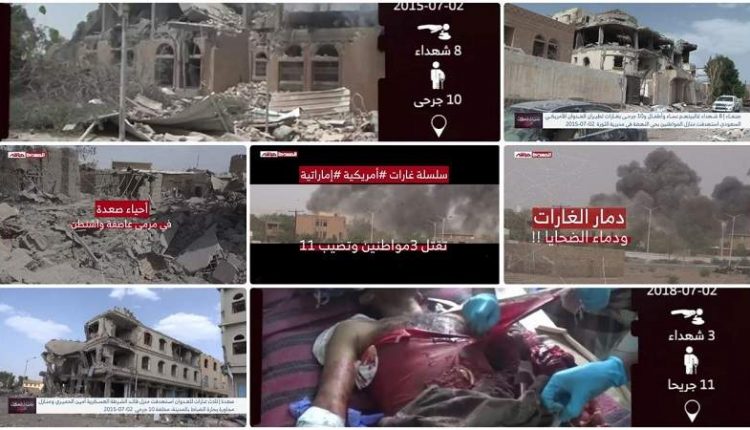 2 يوليو 2018.. 14 شهيداً وجريحاً في استهداف طيران العدوان لمدرسة ومنزل ومعهد بالحديدة: