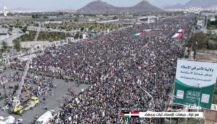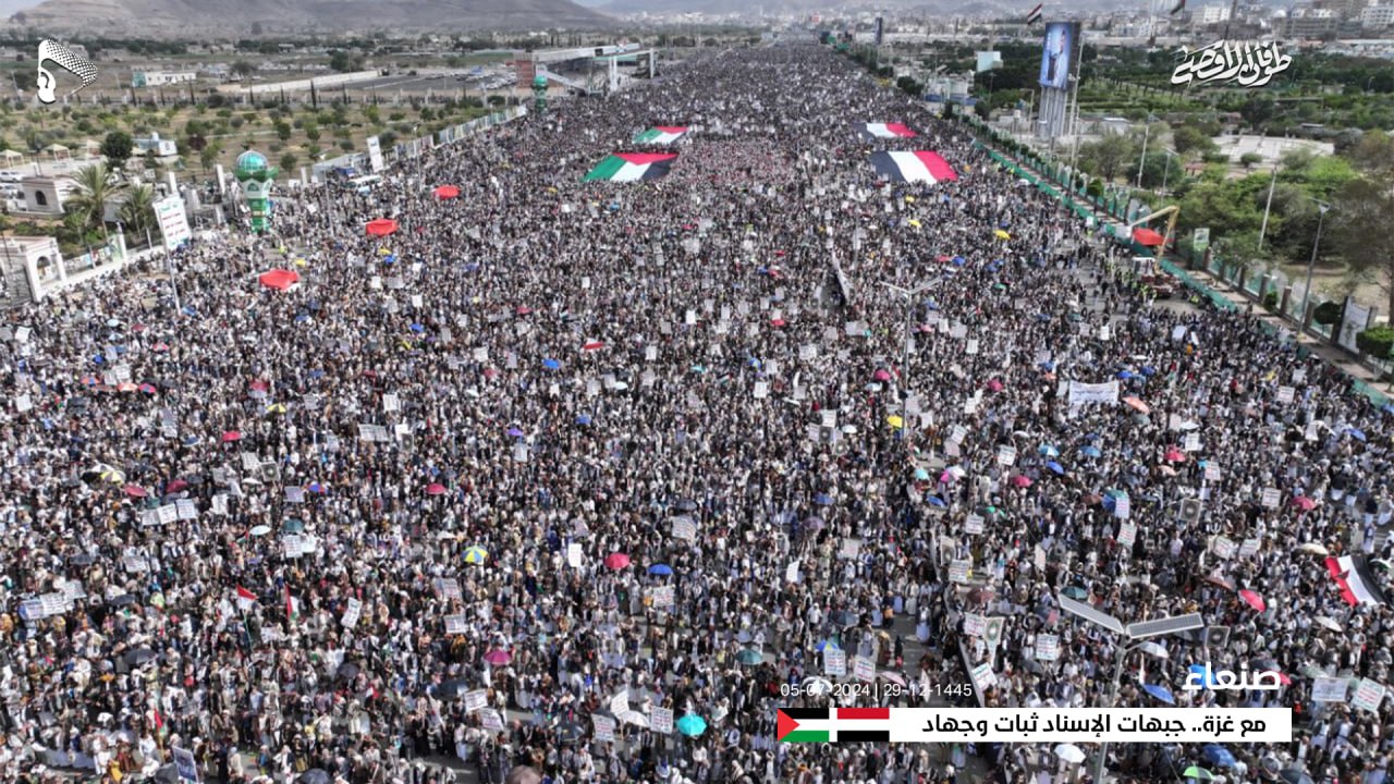 صور جوية | طوفان الأنصار يواصل طريقه بتجاه الأقصى… حشود مليونية غاضبة في مسيرة “مع غزة.. جبهات الإسناد ثبات وجهاد” بميدان السبعين في العاصمة #صنعاء 29-12-1445 | 05-07-2024.
