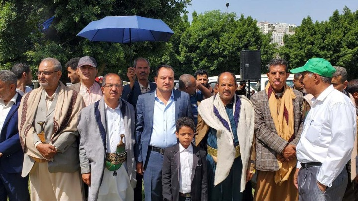 نظم مكتب الأشغال العامة والطرق و وأبناء مديرية الظهار بمحافظة إب اليوم، وقفة حاشدة لمباركة الإنجاز الأمني الذي حققته الأجهزة الأمنية في كشف شبكة التجسس الأمريكية الإسرائيلية.