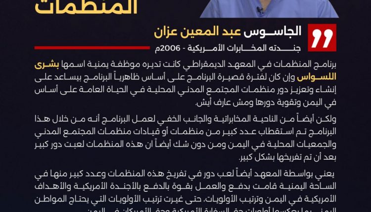 الجاسوس “عزان”: الاستخبارات الأمريكية استهدفت المرأة اليمنية عبر برامج خاصة في المعهد الديمقراطي للدفع بأجندة غربية (فيديو+ تفاصيل)