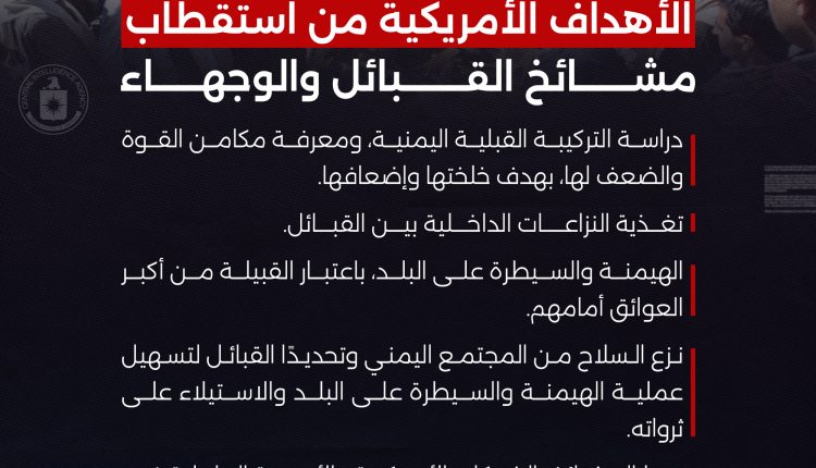تحت غطاء برامج “حل النزاعات”.. المخابرات الأمريكية تستهدف القبائل اليمنية بهدف جمع المعلومات واستقطاب عدد كبير من المشايخ(فيديو وتفاصيل)