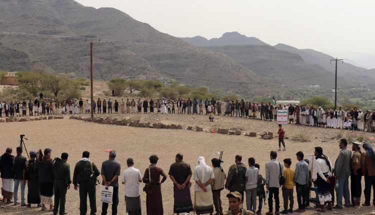 وقفة قبلية لأبناء عزلة منقير بمديرية دمت محافظة الضالع إسنادا لغزة