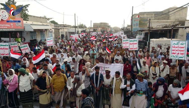 كما أكدت المسيرات، أن احتشاد أبناء الحديدة بهذه الذكرى رسالة لدول العدوان وأدواتها بصمود اليمنيين في مواجهة أعداء الوطن، وإفشال مؤامرات قوى العدوان لكسر الصمود اليماني.