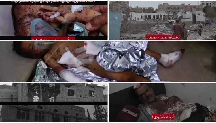 هنا الدماء والأشلاء والدمار والخراب والنار والدخان والغبار والتشرد والصراخ والرعب والخوف ورائحة الموت، وصورة الإبادة، والوحشية، والطغيان السعوديّ الأمريكي في اليمن.