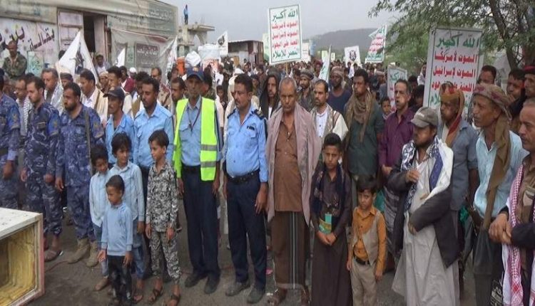 واستنكرت الحشود الجماهيرية الإصرار الأمريكي في دعم الكيان الصهيوني وجرائمه الجماعية في قطاع غزة، مباركين عمليات القوات المسلحة اليمنية في استهداف قلب “تل أبيب”، نصرة ومساندة للشعب الفلسطيني.