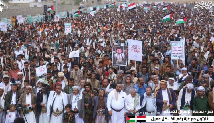 وأكد المشاركون في المسيرات أن أبناء تعز والشعب اليمني بصورة عامة يقفون صفاً واحداً في مساندة الشعب الفلسطيني ونصرة قضيته العادلة وإسناد المقاومة في غزة.