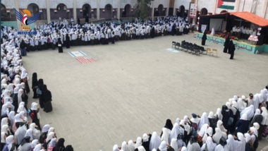 ورفعوا العلَمين اليمني والفلسطيني، والشعارات المؤكِّدة على استمرار التضامن مع الشعب الفلسطيني ومقاومته الباسلة، والمباركة والمؤيِّدة لعمليات القوات المسلحة اليمنية ضد العدو الأمريكي والصهيوني؛ نصرة لغزة.