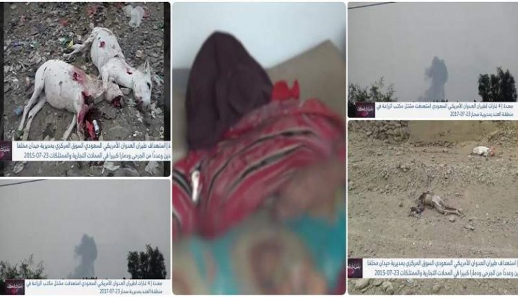 23 يوليو 2015.. شهيدان وعددٌ من الجرحى في استهداف العدوان سوق مركزي بصعدة: