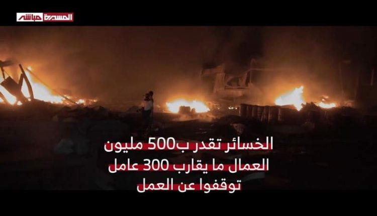وفي مديرية الحالي منطقة كيلو 16 أسفرت غارات العدوان المستهدفة لمصنع العودي للبلاستيك، عن احتراق كامل للهناجر والبضائع، عجزت أمامها فرق الإطفاء والدفاع المدني، دون جدوى، وتقدر الخسائر بـ 500 مليون وقطع أعمال 300 عامل، يقف خلفهم 300 أسرة من الأطفال والنساء، فقدوا مصدر عيشهم، ولولا رعاية الله لحصلت جريمة أكبر.