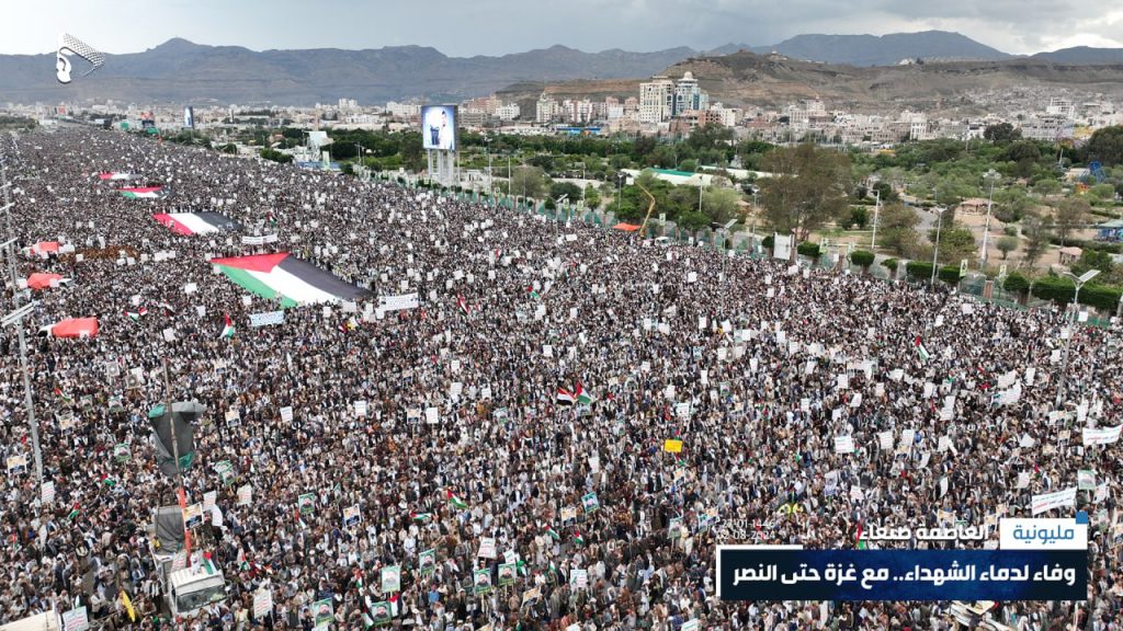صور| ميدان النصرة الأكبر يكتظ بالمتأهبين للرد والفتح… مليونية “وفاء لدماء الشهداء.. مع غزة حتى النصر” في ميدان السبعين بالعاصمة صنعاء