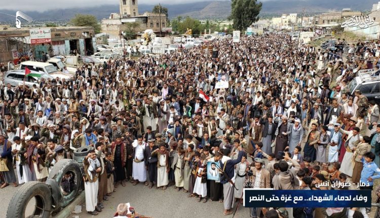شهدت محافظة ذمار اليوم، مسيرات جماهيرية حاشدة تحت شعار “وفاء لدماء الشهداء.. مع غزة حتى النصر”.