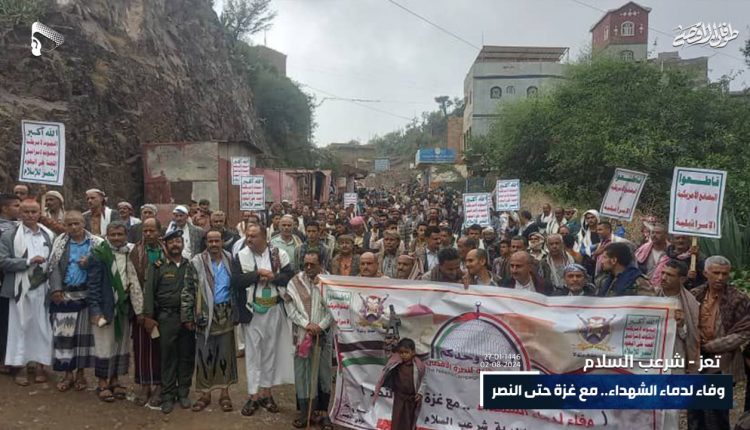 11 مسيرة جماهيرية في تعز وفاءً لدماء الشهداء ونصرة وإسناداً للمقاومة الفلسطينية