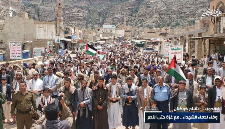 شهدت محافظة المحويت، اليوم،32 مسيرة ووقفة نصرةً للشعب الفلسطيني ودعماً لقضيته العادلة تحت شعار” وفاء لدماء الشهداء.. مع غزة حتى النصر”.