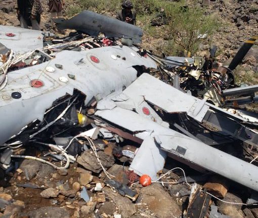 أول صورة لحطام الطائرة الأمريكية التي تم إسقاطها في سماء صعدة