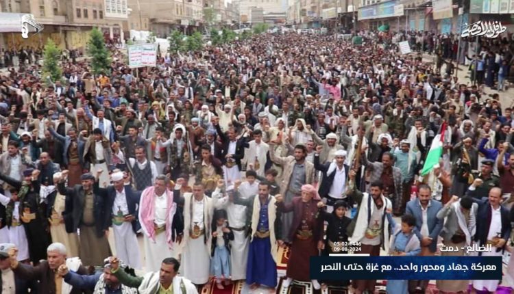 مسيرات حاشدة في الضالع تحت شعار “معركة جهاد .. ومحور واحد مع غزة حتى النصر”