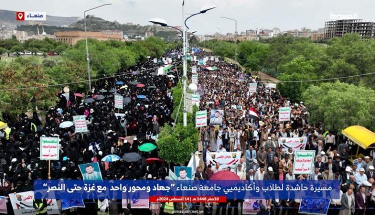 مسيرة حاشدة مساندة لغزة بجامعة صنعاء