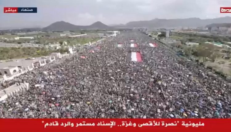 توافد جماهيري كبير إلى ميدان السبعين بصنعاء وساحات المحافظات للمشاركة في مليونية “نصرة للأقصى وغزة.. الإسناد مستمر والرد قادم”