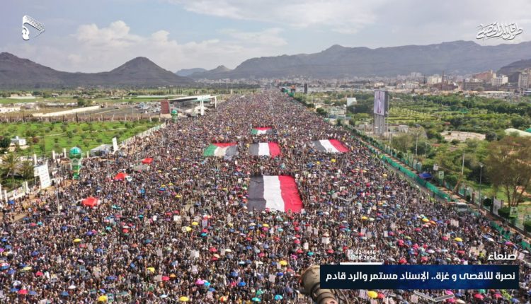 العاصمة صنعاء في طوفان مليوني متجدد إسنادا لفلسطين تحت شعار (نصرة للأقصى وغزة.. الإسناد مستمر والرد قادم)