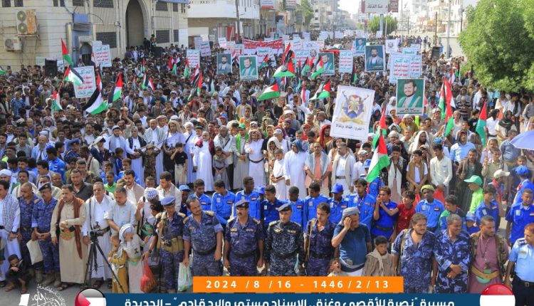 صور| الحديدة تشهد 37 ساحة في مسيرات “نصرة للأقصى وغزة.. الإسناد مستمر والرد قادم” On أغسطس 16, 2024 Share يمني برس/ صور صور| الحديدة تشهد 37 ساحة في مسيرات “نصرة للأقصى وغزة.. الإسناد مستمر والرد قادم” Share