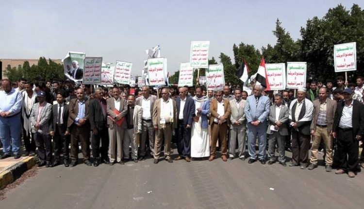 ورفع المشاركون في المسيرة العلمين اليمني والفلسطيني، مرددين الشعارات والهتافات المنددة باستمرار جرائم الإبادة الجماعية التي يرتكبها كيان العدو بحق سكان غزة.