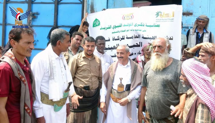 دشن مكتب الهيئة العامة للزكاة في مديرية باجل بمحافظة الحديدة، اليوم، توزيع الزكاة العينية من الحبوب على المستحقين من الفقراء والمساكين؛ تزامنا مع إحياء ذكرى المولد النبوي الشريف.
