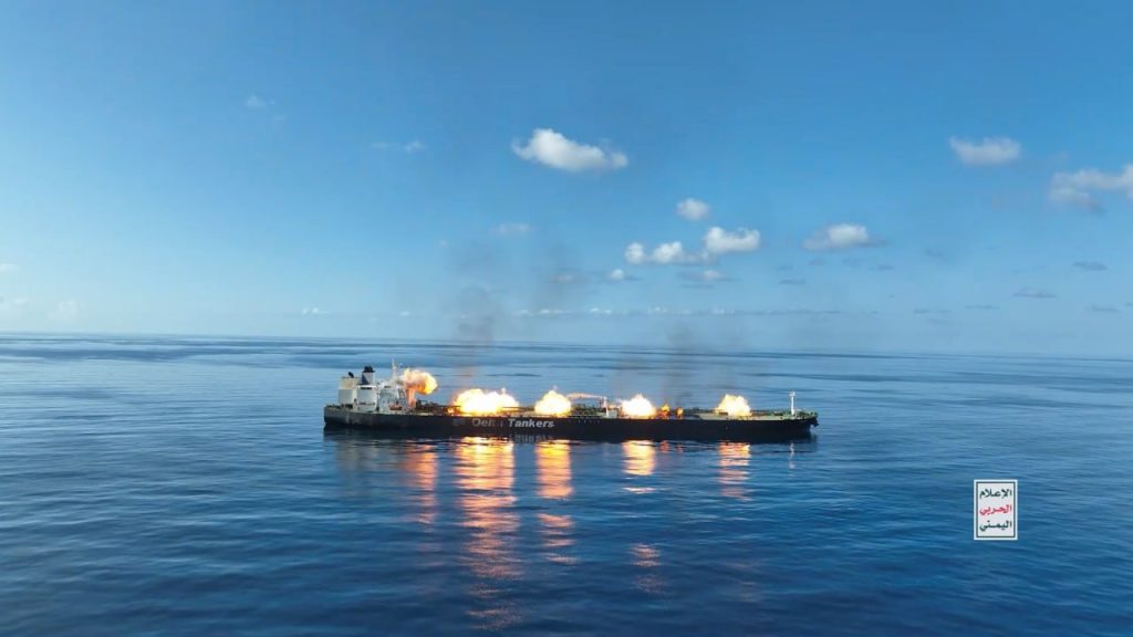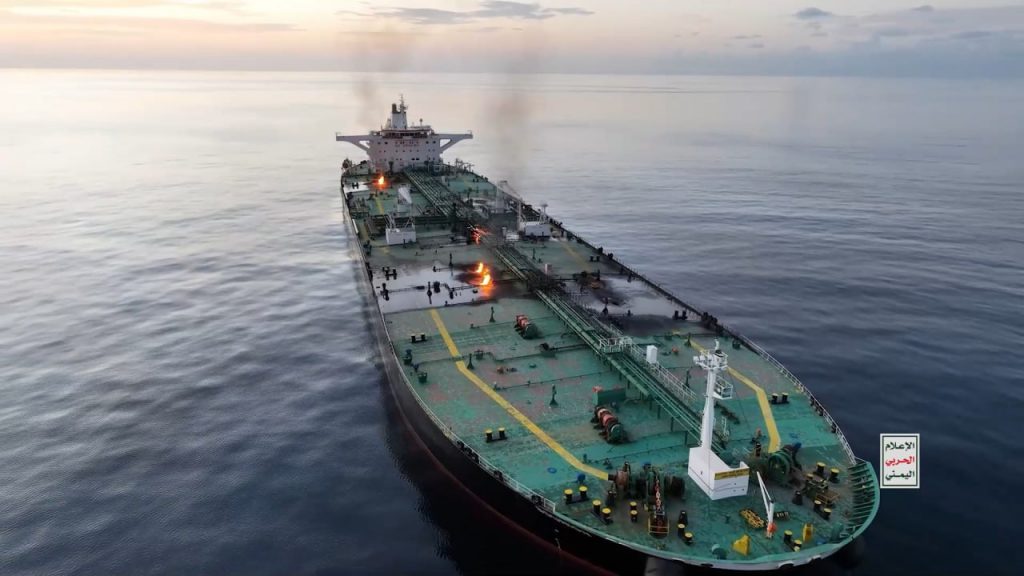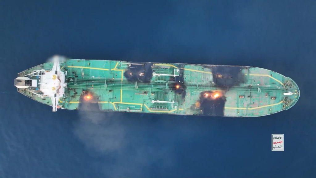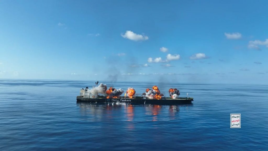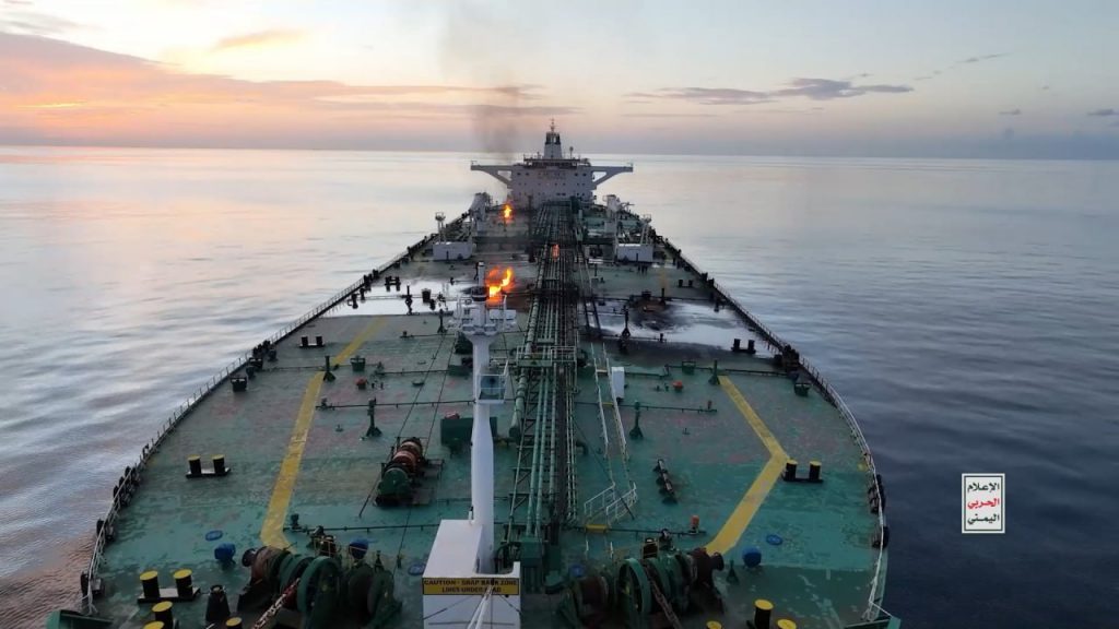 بالصور| مشاهد من اقتحام وإحراق السفينة اليونانية (SOUNION) في البحر الأحمر والتي قامت الشركة المالكة لها بانتهاك قرار حظر الدخول إلى موانئ فلسطين المحتلة