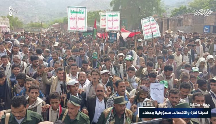 احتشد ابناء محافظة حجة في مسيرات “نصرتنا لغزة والأقصى .. مسؤولية وجهاد” إسناداً للشعب الفلسطيني وانتصاراً للأقصى ودعماً لقطاع غزة.