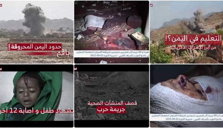 تعمد العدوان السعوديّ الأمريكي، ارتكاب المجازر الوحشية وجرائم الحرب والإبادة الجماعية، بغاراته الجوية وعملياته الانتحارية المفخخة عبر عناصره التكفيرية من الأرض، واستهداف المساجد والمنازل والممتلكات الخاصة والعامة، في مشاهد مأسوية يندى لها جبين الإنسانية في اليمن.