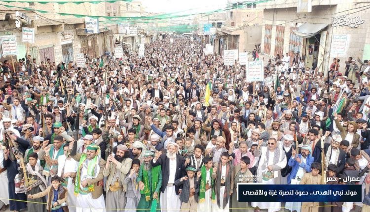 خرج أبناء محافظة عمران اليوم في 43 مسيرة، وفاء للرسول الأعظم وتضامناً مع الشعب الفلسطيني تحت شعار “مولد نبي الهدى.. دعوة لنصرة غزة والأقصى”.