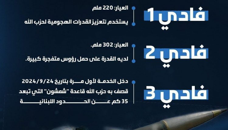بعد “فادي 1″ و”فادي 2”.. حزب الله يكشف لأول مرة عن صاروخ “فادي 3” ويقصف به قاعدة “شمشون” (صورة) Last updated سبتمبر 25, 2024 Share يمني برس| بعد “فادي 1″ و”فادي 2”.. حزب الله يكشف لأول مرة عن صاروخ “فادي 3” ويقصف به قاعدة “شمشون” (صورة) Share