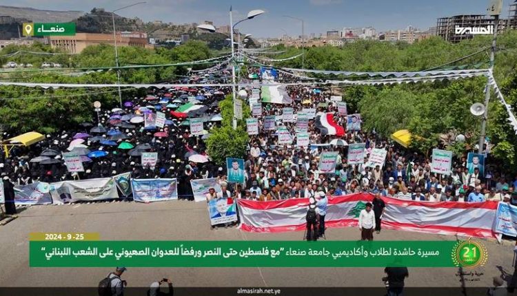 مسيرة حاشدة بجامعة صنعاء تنديداً بمجازر الإبادة في غزة ولبنان