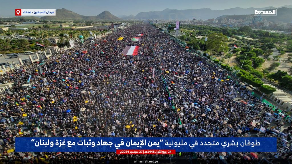 شاهد.. حشود مليونية وطوفان بشري يملأ ميدان السبعين بالعاصمة صنعاء في مسيرة “يمن الإيمان في جهاد وثبات مع غزة ولبنان” (صور جوية رائعة)