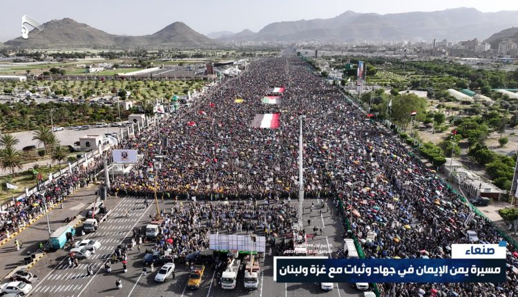شاهد| حشود مليونية وطوفان بشري يملأ ميدان السبعين بالعاصمة صنعاء في مسيرة “يمن الإيمان في جهاد وثبات مع غزة ولبنان” (صور جوية رائعة)