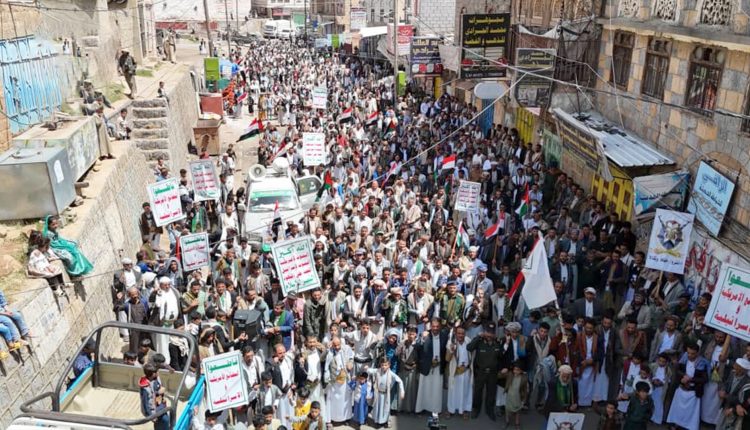35 مسيرة ووقفة في المحويت دعماً واسناداً للشعبين الفلسطيني واللبناني