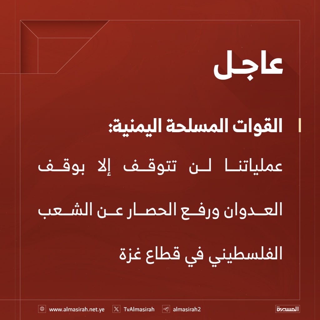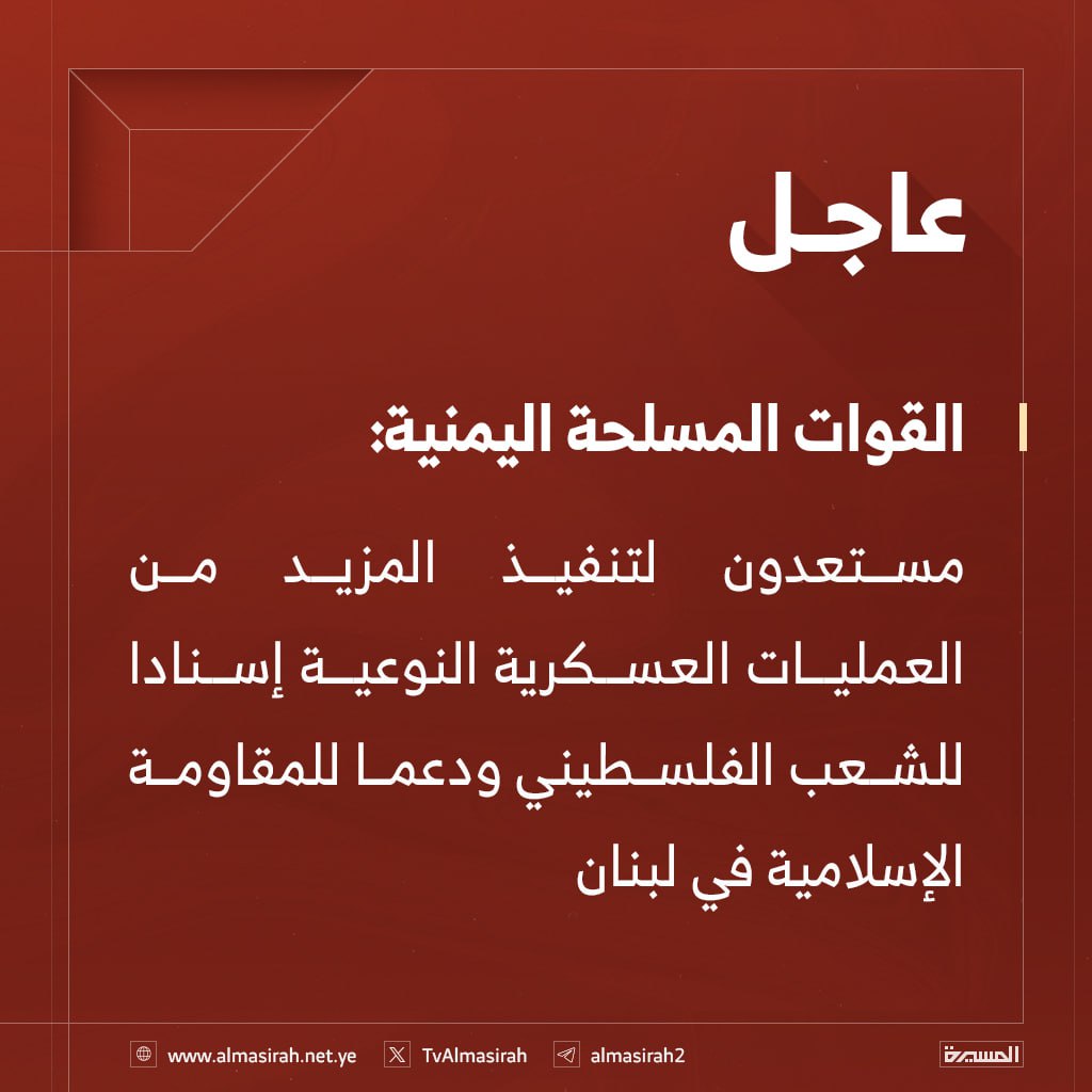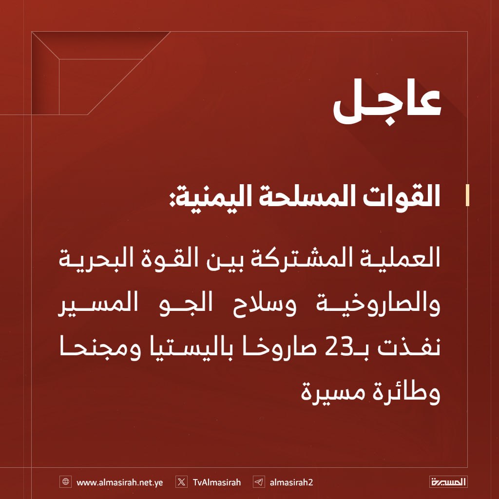 شاهد| بيان القوات المسلحة اليمنية بشأن تنفيذ عملية عسكرية نوعية استهدفت 3 مدمرات حربية أمريكية معادية في البحر الأحمر (إنفوجرافيك)