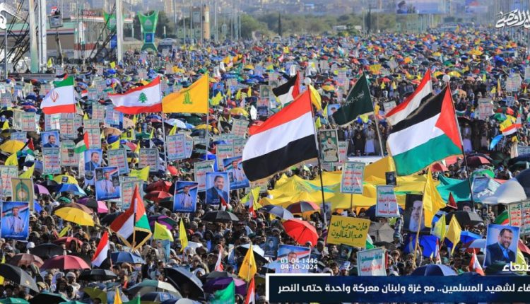 على مقربة من مرور عام على معركة طوفان الأقصى، وتحت شعار “وفاء لشهيد المسلمين”، جدّدت الجماهيرية اليمنية العهد للشعبين الفلسطيني واللبناني ومحور المقاومة “إنَّا معكم وإلى جانبكم” حيث انطلقت المسيرات في جميع أنحاء البلاد لتعبر عن دعمها لشعب فلسطين في قضيته العادلة.
