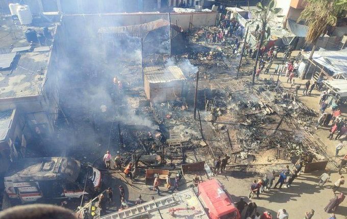 ارتكبت العدو الإسرائيلي عبر طائراته الحربية عصر اليوم مجزرة مروعة في محيط مستشفى “اليمن السعيد” بمخيم جباليا وسط قطاع غزة.